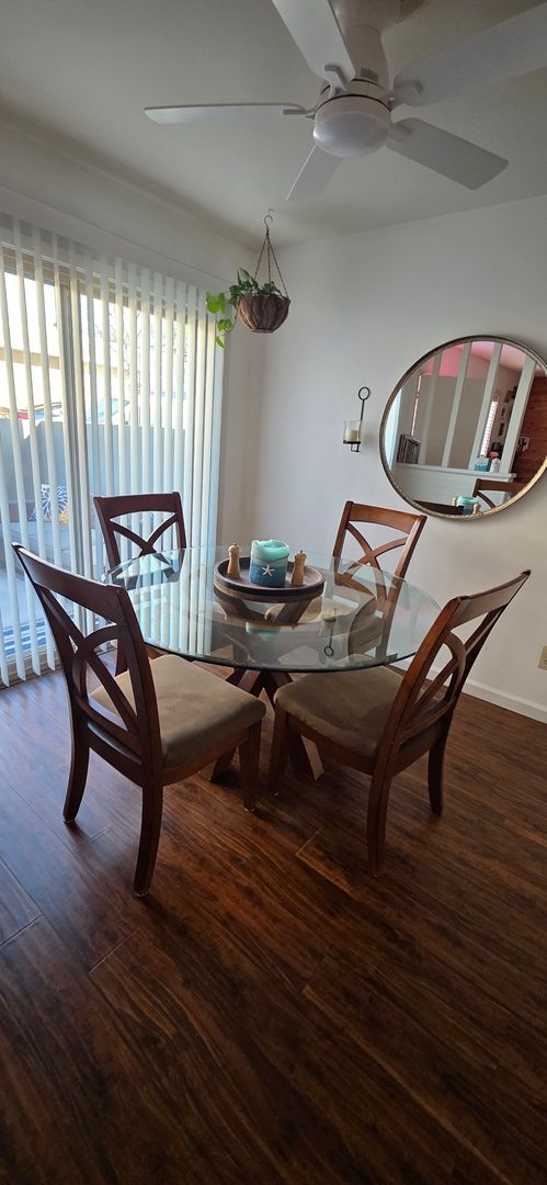 3-bedroom +2.5 bath charming Thousand Oaks townhome with lots of natural sunlight which includes an attached 1-car garage w/direct access. Additional adjacent assigned parking spot as well. Large patio area. Community pool, spa & tennis court. Newer carpet and newer ceiling fans. Living room has a cozy fireplace. Inside laundry area. Very close to Los Cerritos Middle School. Nearby shopping area, Beautiful hiking and biking trails nearby. Sorry No pets!